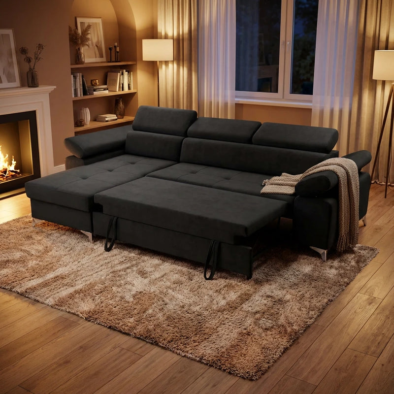 Pakanka vieno švelnaus judesio – sėdimoji dalis išslysta, pakyla ir susijungia į lygią miego erdvę.