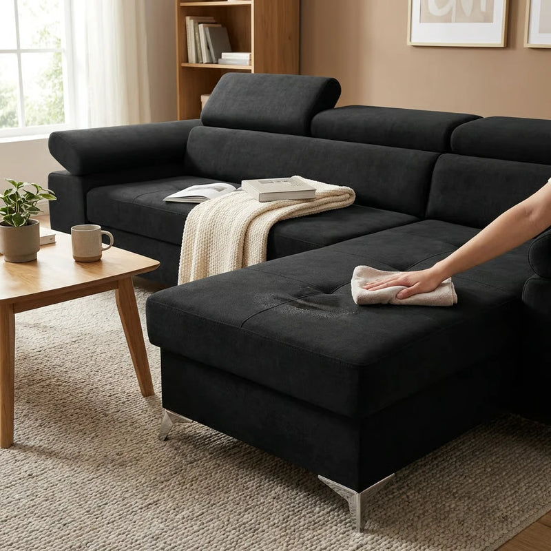 Išskleista sofa išlieka stabili ir tvirta, o paviršius – lygus ir patogus.